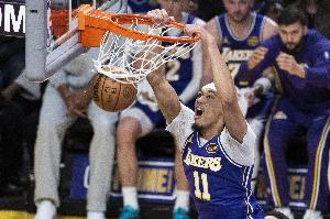 拉拉维亚抢断 詹姆斯仙人指路助飞海斯 湖人开场先声夺人