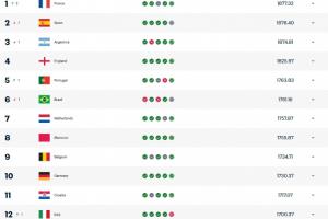 FIFA最新排名:法国超西班牙登顶 意大利升第12 日本第18 国足94