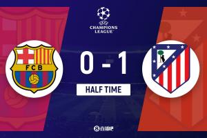 半场结束,马竞暂1-0巴萨。