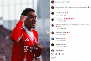 穆西亚拉也在赛后通过社媒晒出自己的比赛照,并配文:“今天在客场取得大胜,我们会继续前进。”